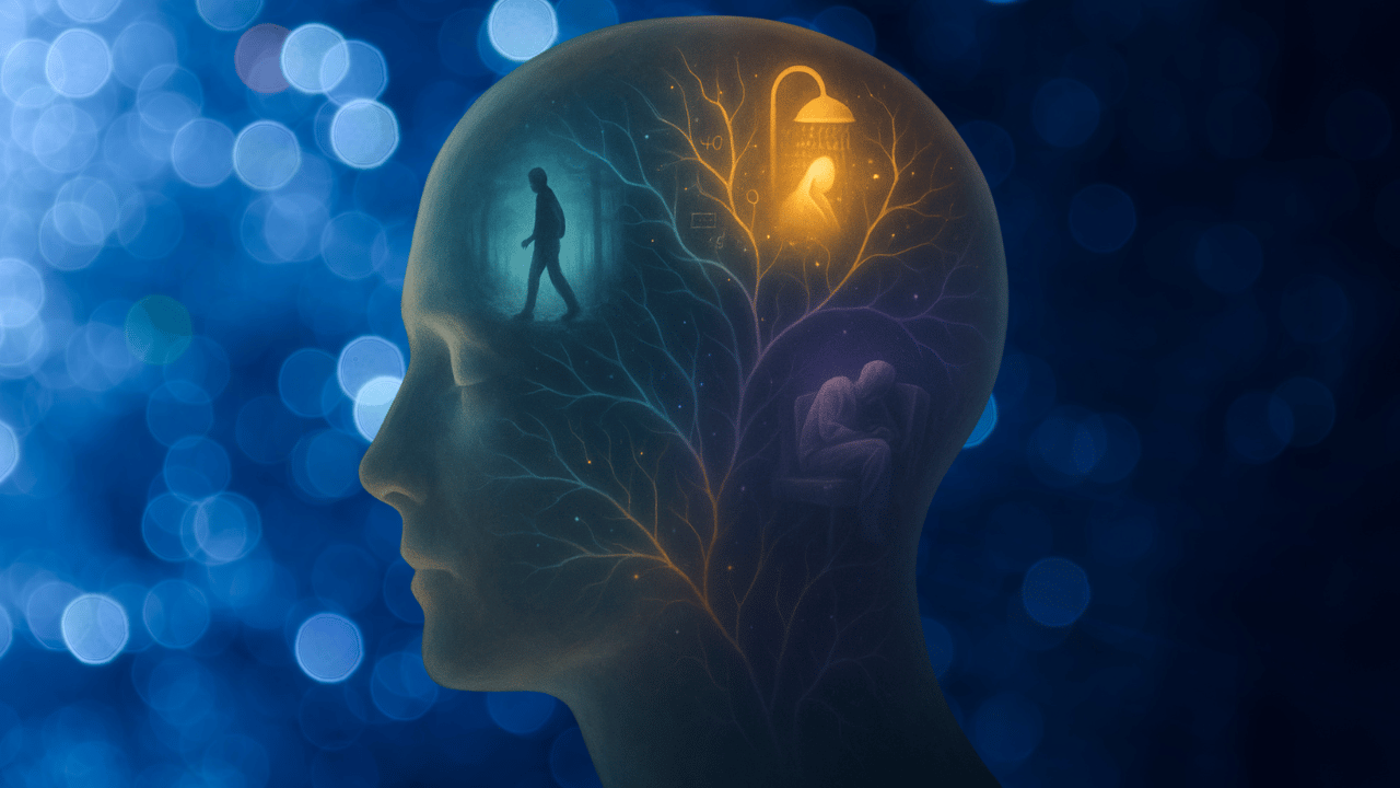Neuroscience has a name for what controls your wandering mind during a walk, a shower, or just before sleep: the Default Mode Network (DMN). This brain network kicks in when you’re not actively focused. The DMN is far from being idle, and is actually quietly powerful. It helps you connect distant ideas, reframe problems, and surface creative insights that your conscious mind might overlook.